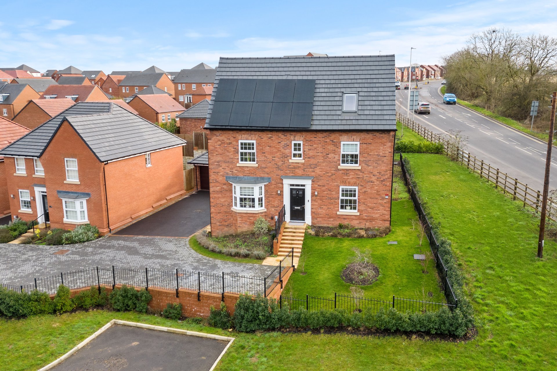 A magnificent 5/6 bedroom property for sale close to Hillmorton and Houlton in Rugby, Warwickshire. The property is the Moreton design by David Wilson Homes and has been greatly improved by the owners who have owned it for 2 years and added some excellent extra after-market features such as solar panels, Karndean flooring and fitted wardrobes. It benefits from 8 years remaining NHBC warranty. Occupying a corner plot with a double garage and parking for 6 cars on the driveway which is easily accessible to Hillmorton and Houlton schools and all the major road networks and Rugby Railway Station is 3.5 miles.