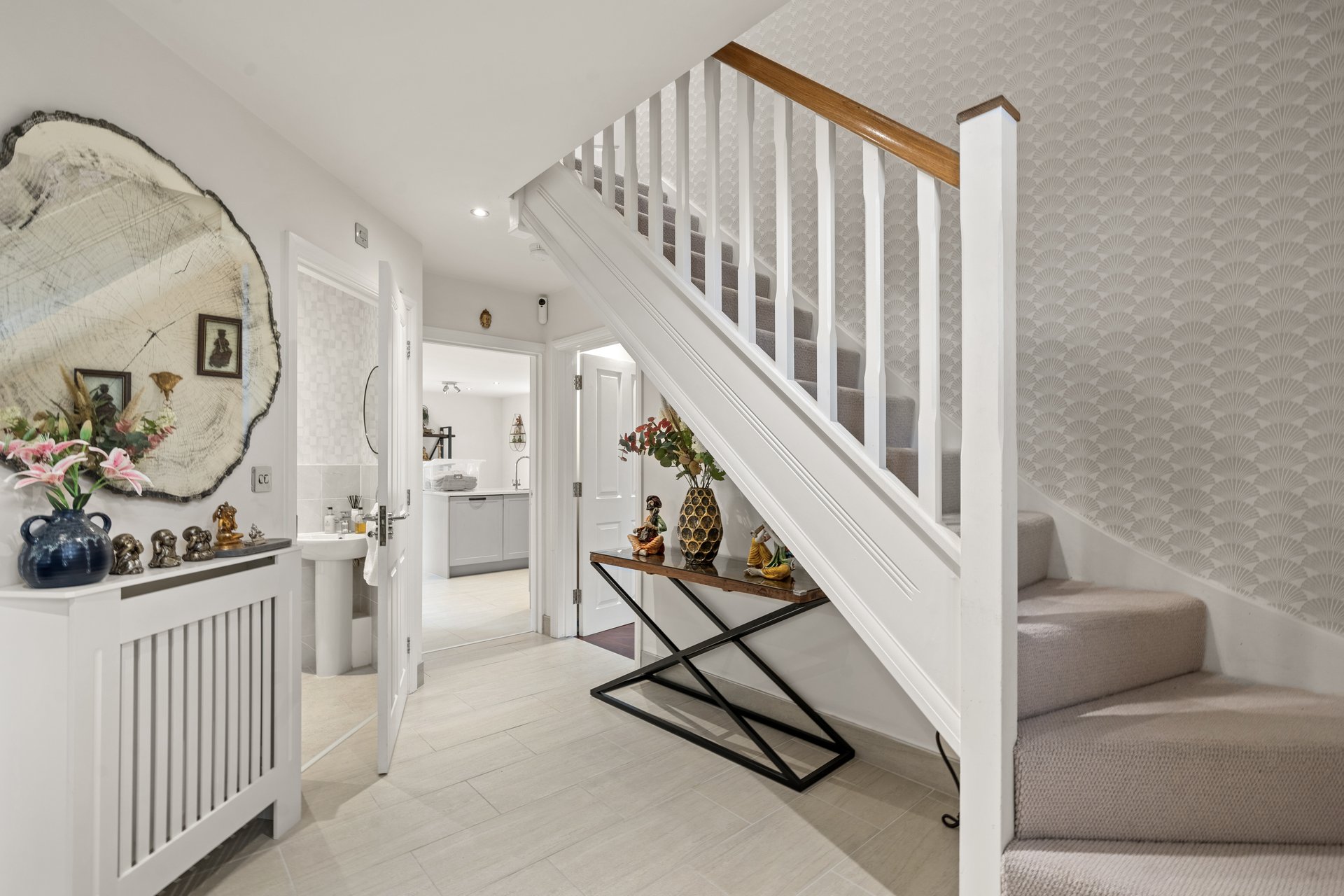 First Floor - Main Bedroom with Wardrobe Area and Full En-suite, Two Further Bedrooms all with built in wardrobes, Family Bathroom, Cupboard with Hot Water Cylinder and Extra Storage Cupboard.