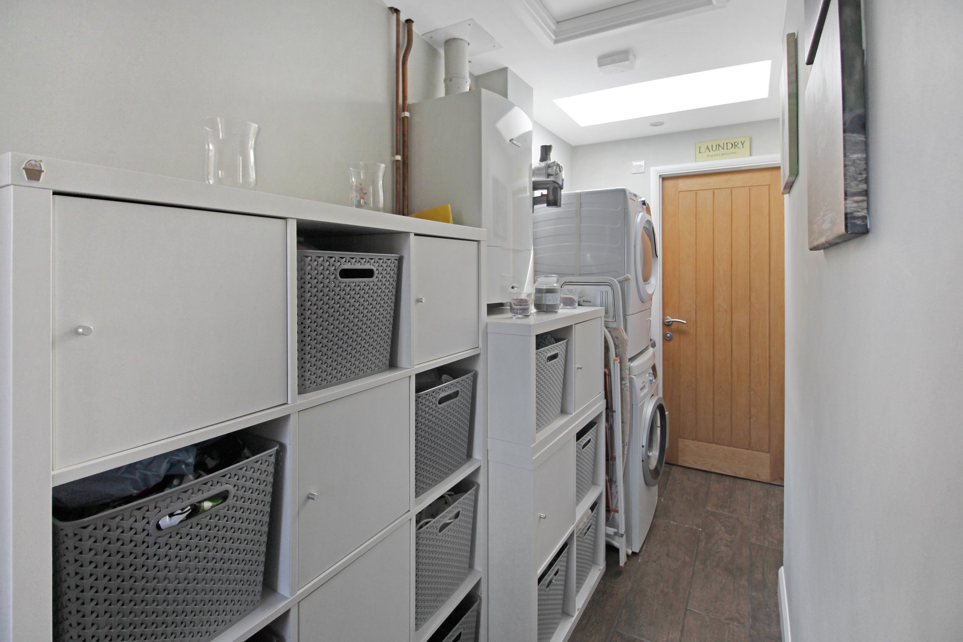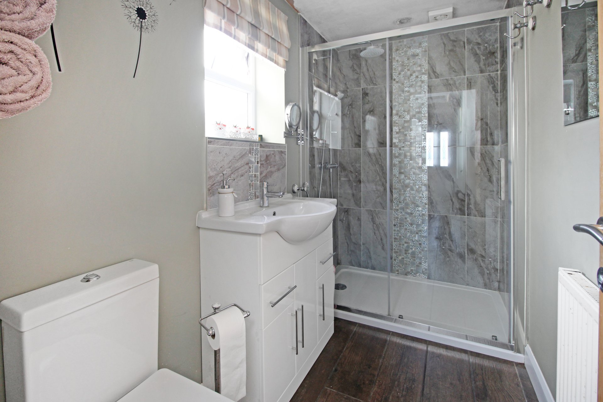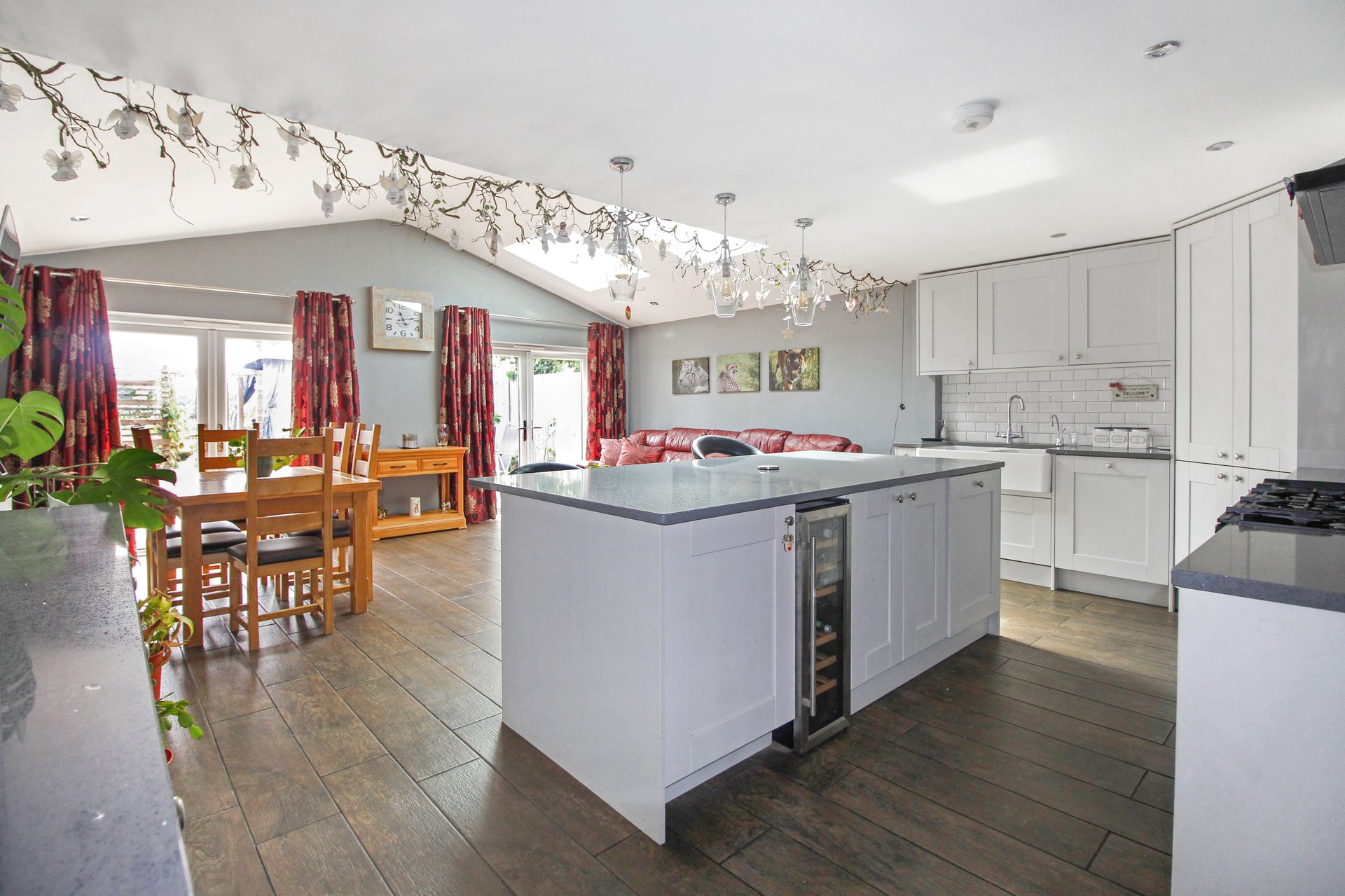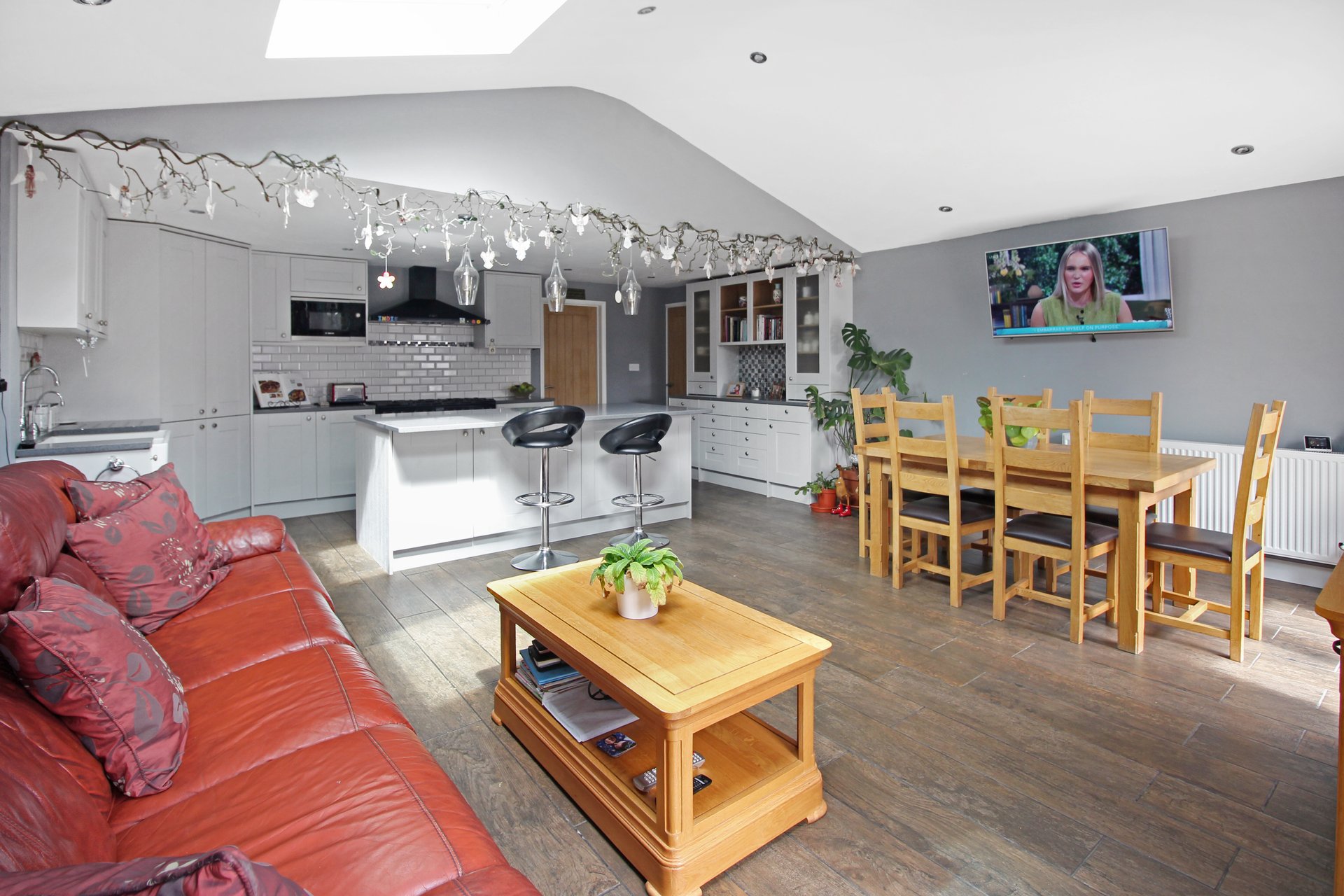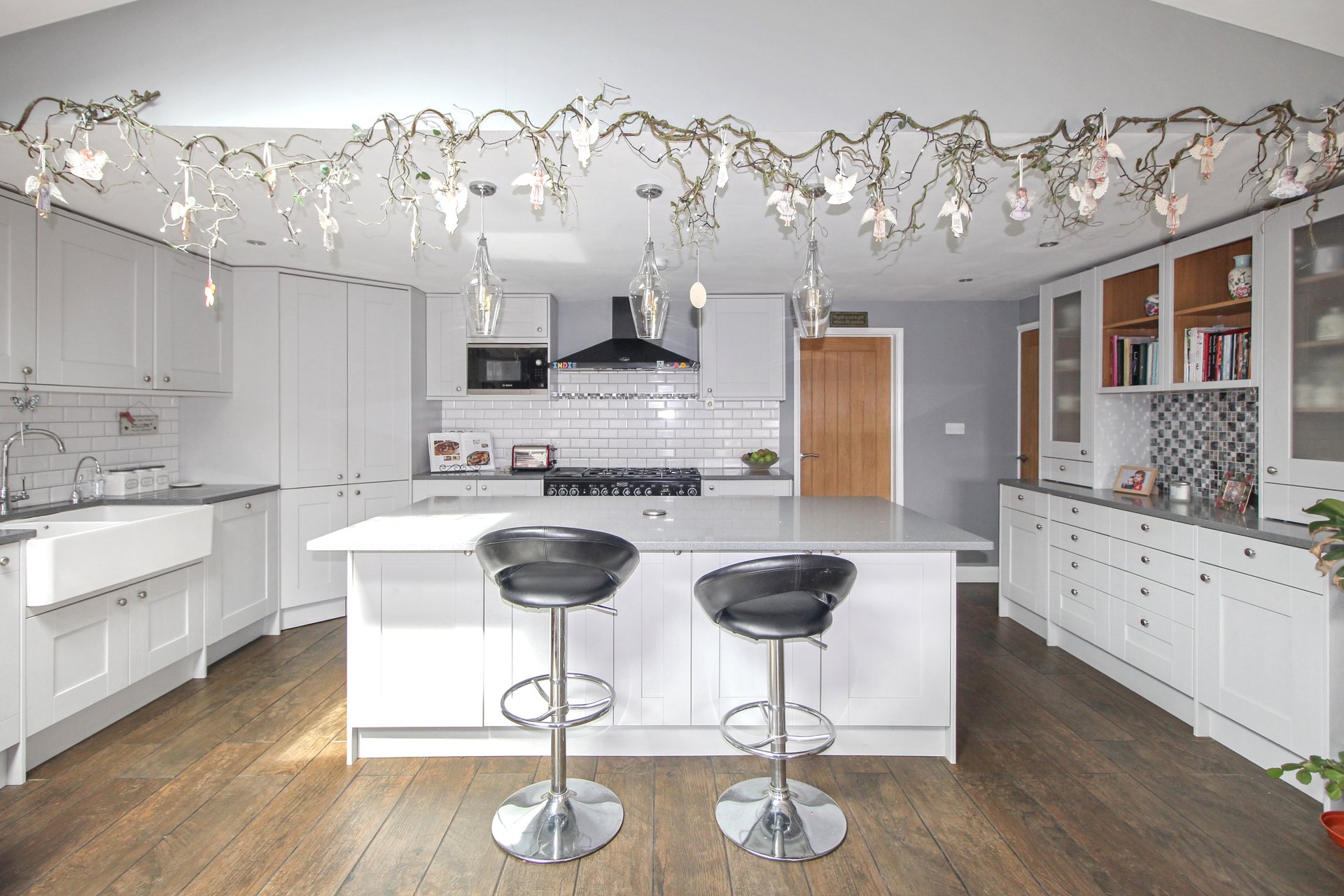 The property has been extended and much improved over several years and the well presented accommodation comprises to the ground floor: entrance hallway with tiled floor, well proportioned lounge with feature fireplace and gas inset fire, handy utility room, modern shower room with W.C. and completing the ground floor is a fabulous open plan lifestyle kitchen/family room with French doors onto the garden which boasts extending countryside views. The kitchen has been refitted with pale grey shaker style units incorporating a double ceramic 'butlers' sink, integrated dishwasher, pull out bins, fridge and bespoke built in pantry! All complimented by grey quartz work surfaces and wood plank effect ceramic tiled floor .