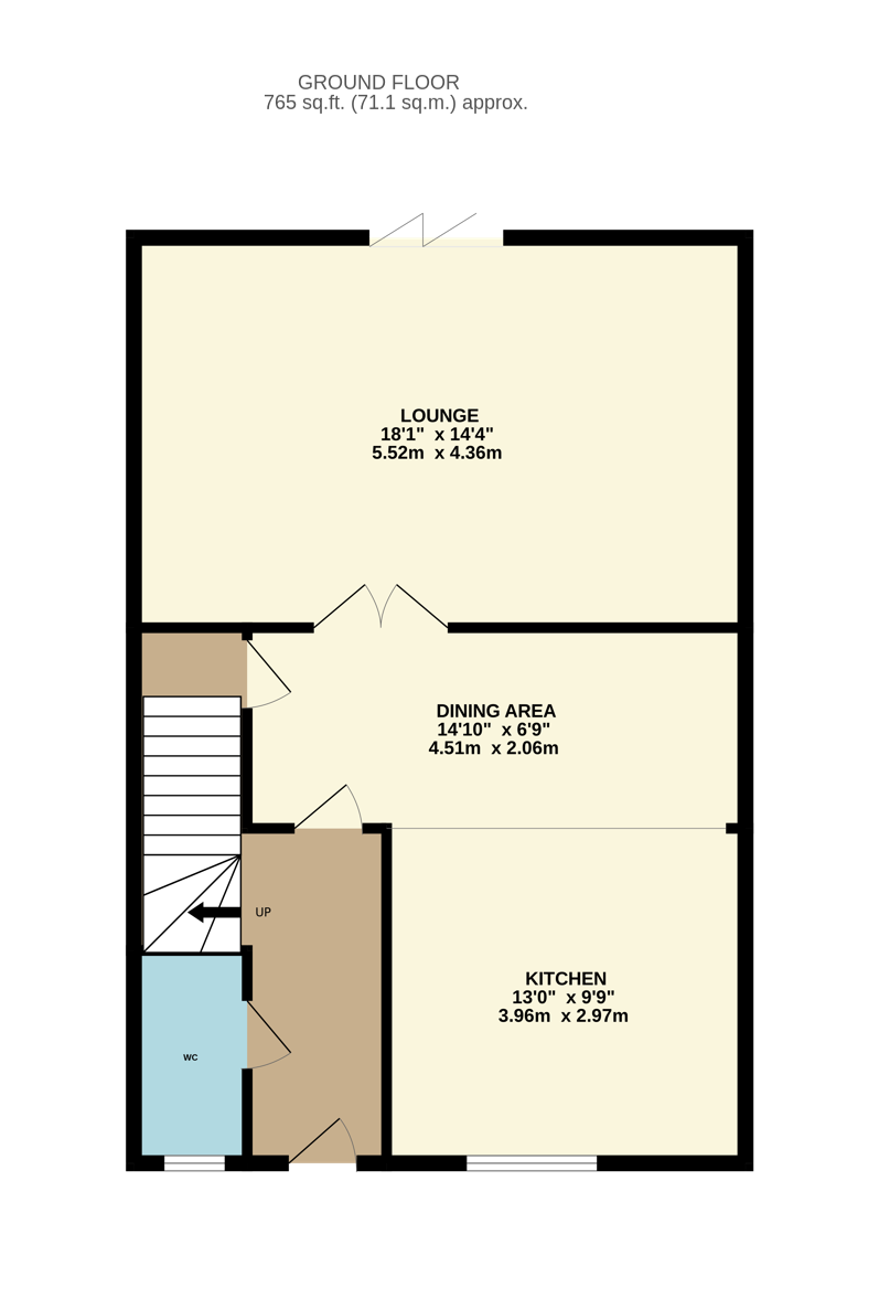 Ground - Entrance Hall, W.C. Kitchen and Dining Area, Family Lounge and Storage Cupboard
