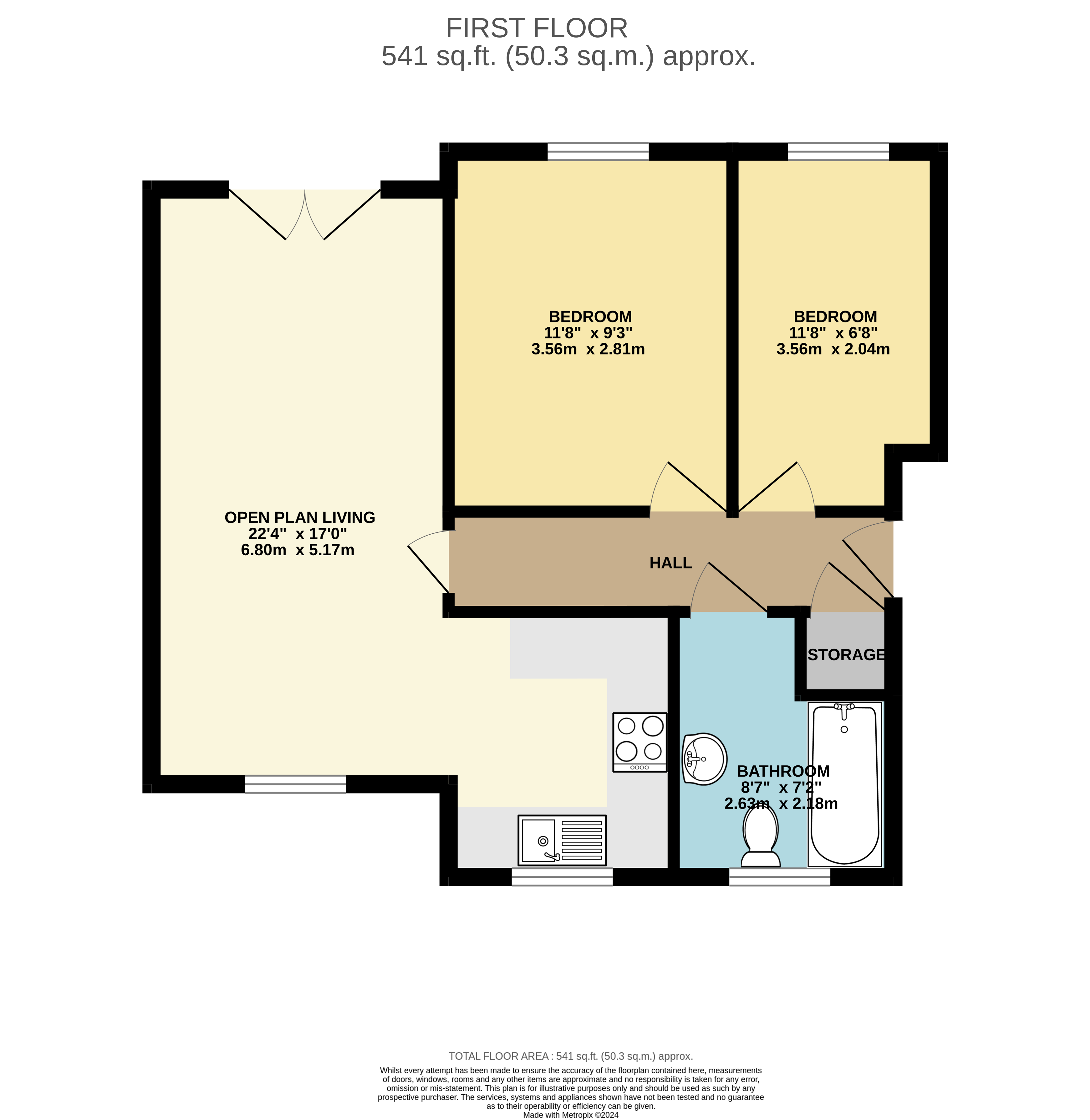 This spacious apartment is presented in excellent order throughout and accommodation comprises: entrance hallway, well proportioned open plan living/dining/kitchen area. The kitchen is fitted with a range of beech fronted cabinets, built in oven, hob and extractor, leaving plenty of space for a washing machine and upright fridge/freezer. The lounge/dining area has a dual aspect with french doors and 'juliet' style balcony. The main double bedroom benefits from built in wardrobes, there's a second good sized single bedroom and larger than average bathroom for an apartment. The property further benefits from a secure entry system, Upvc double glazing, gas central heating and well maintained communal areas.
