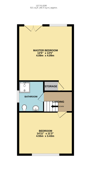 Bedroom two is on the front of the house and is also is the full width of the property allowing lots of space to move around a Kingsize bed, and for bedroom furniture.