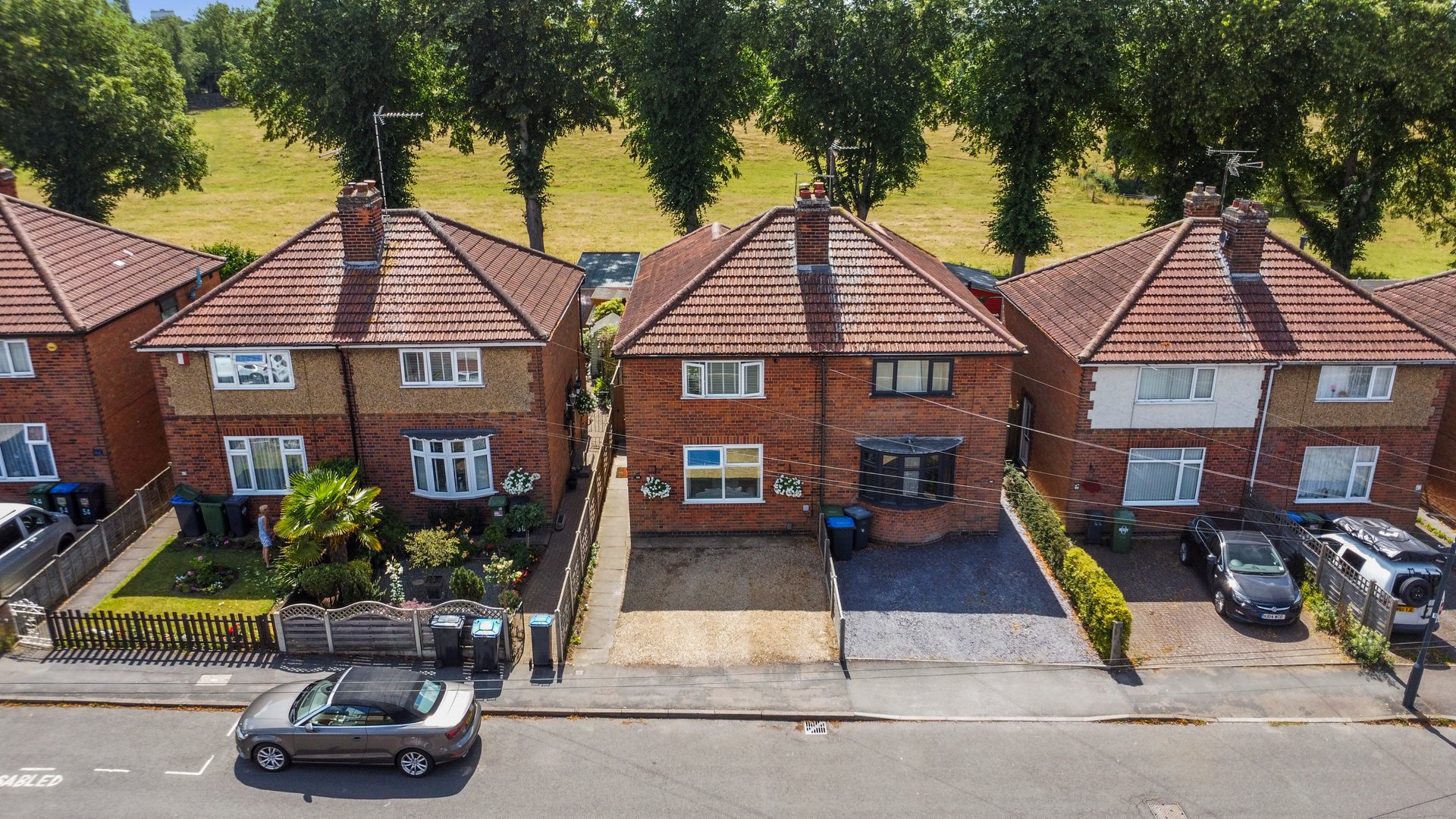 To the front of the property there is off road parking for two cars and a pedestrian footpath that leads to the side of the house to the front door and to a gate that leads to the rear garden.