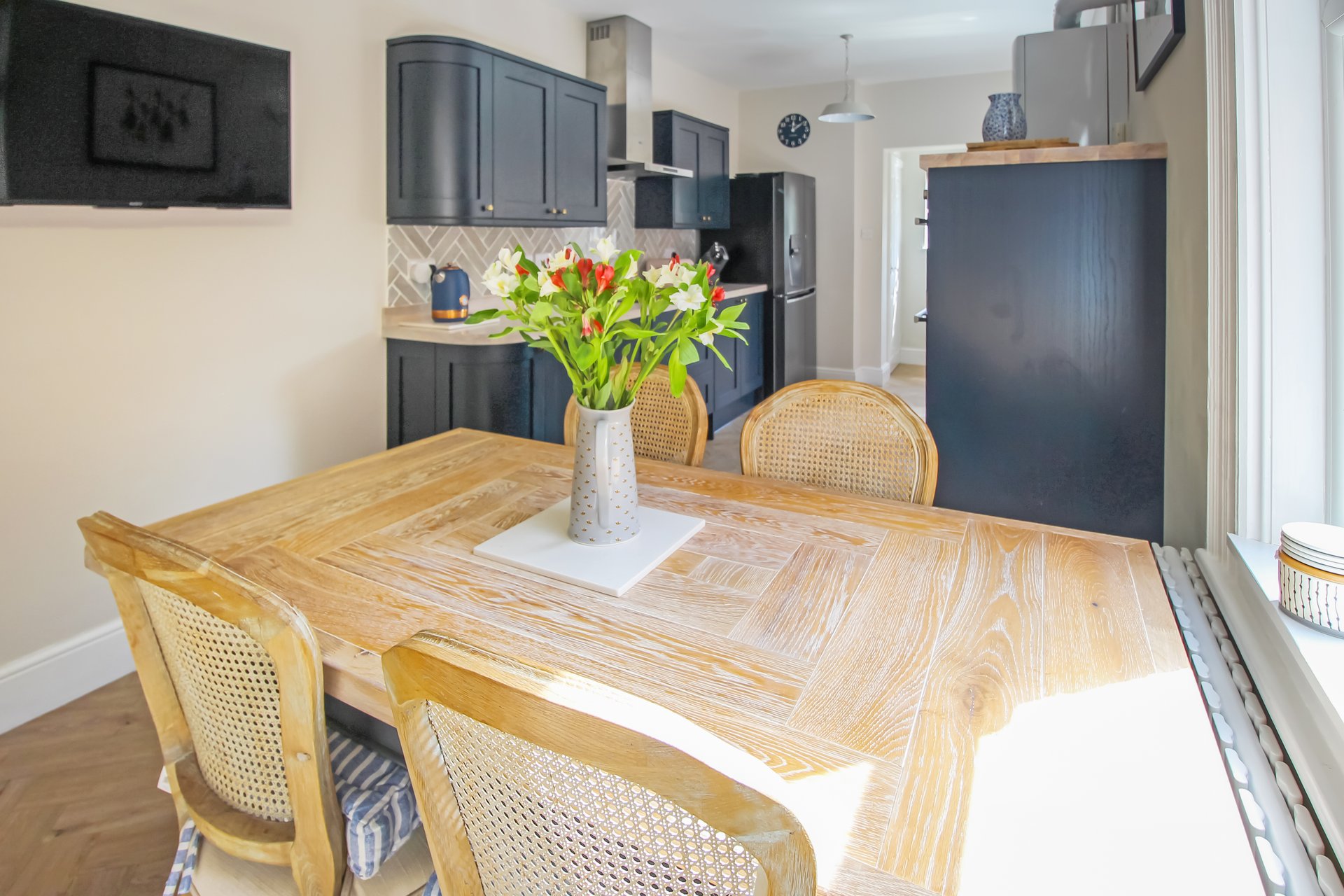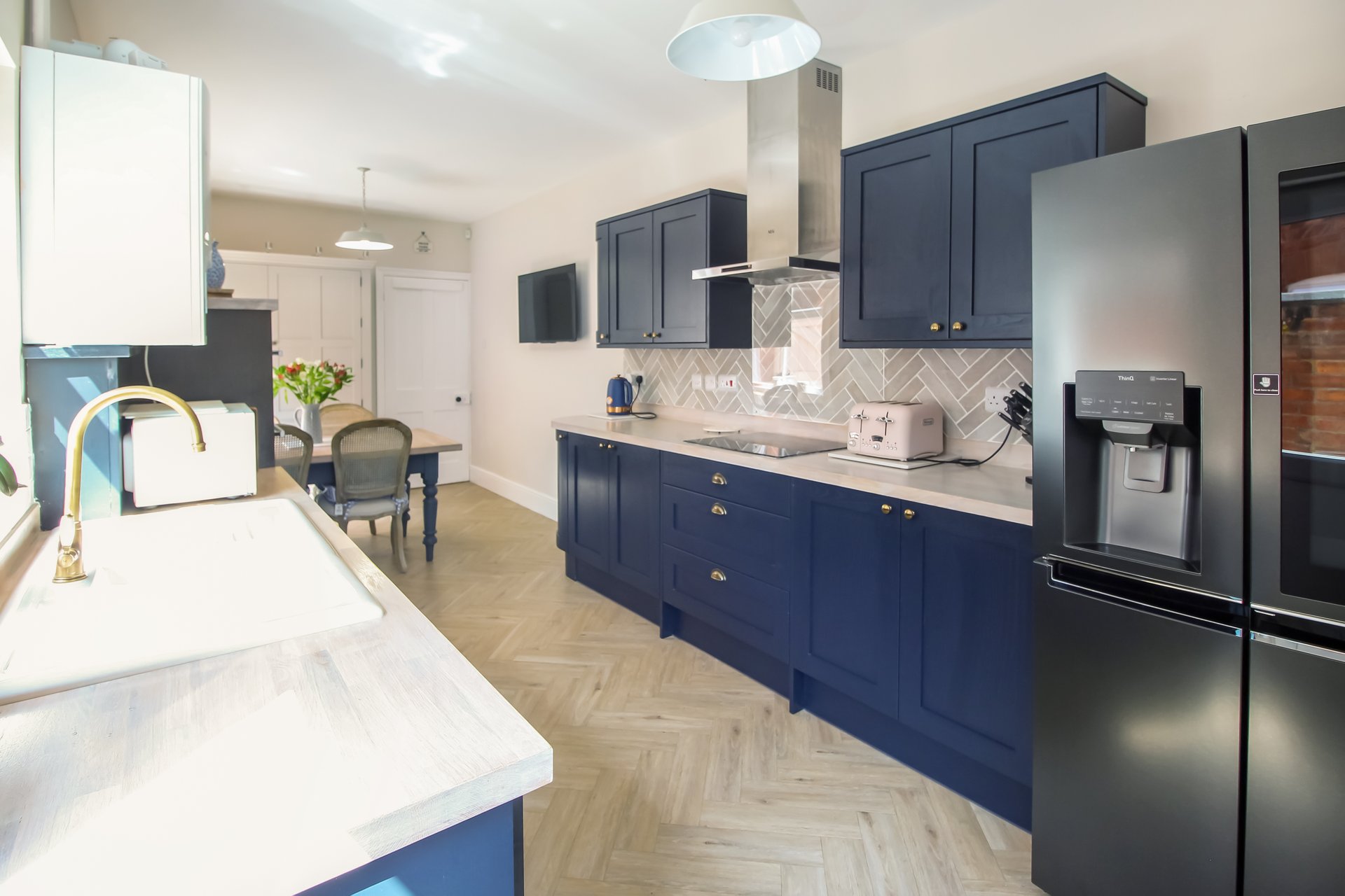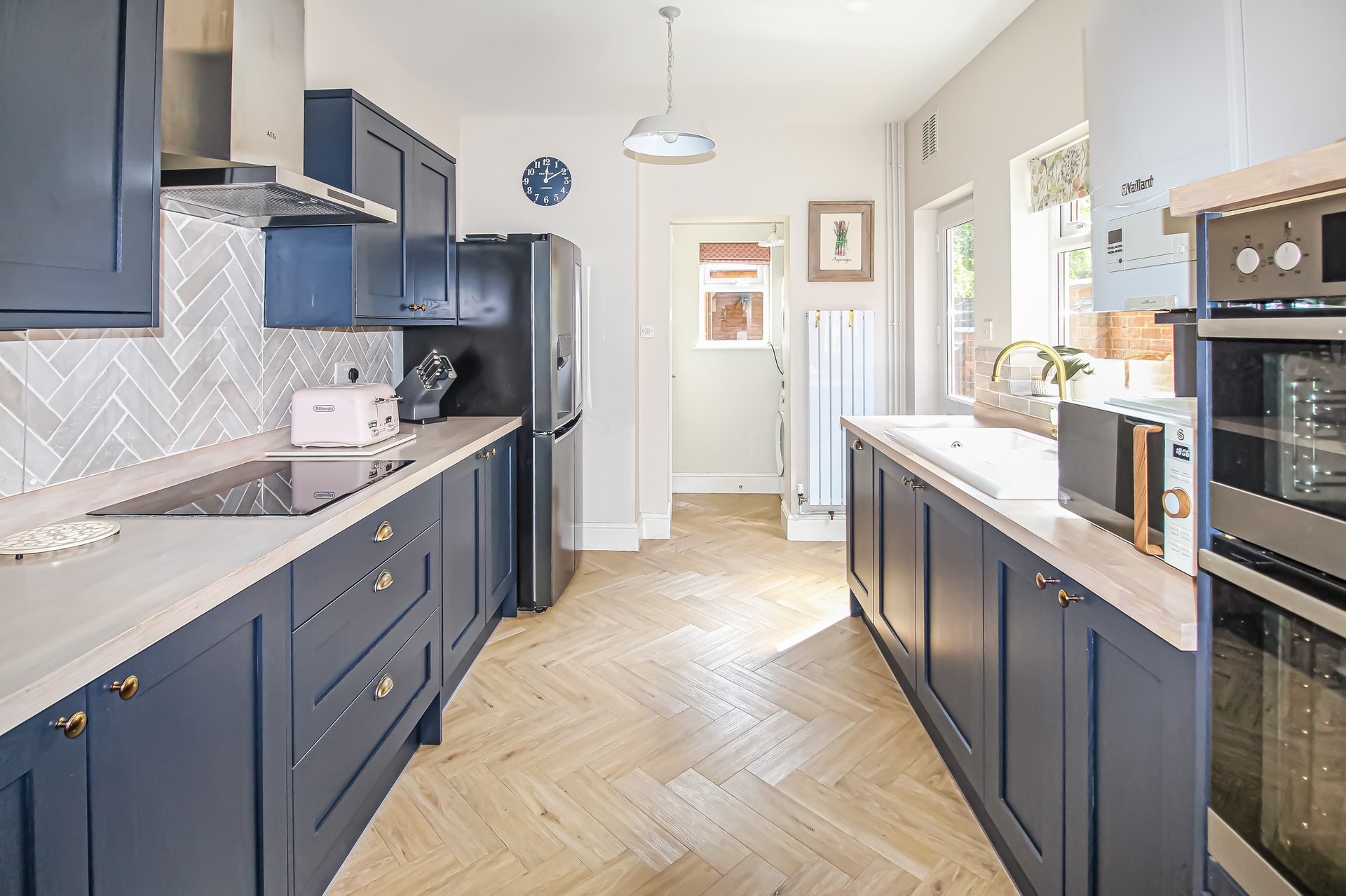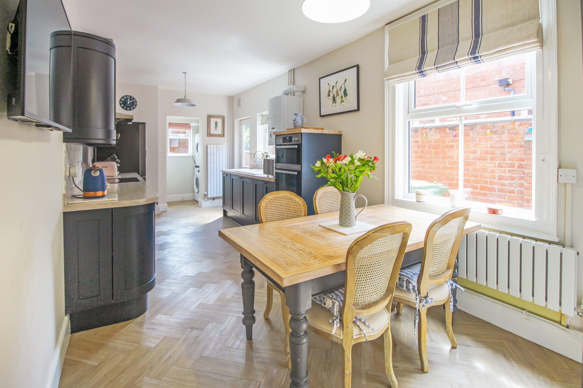 This deceptively spacious Victorian townhouse has been significantly updated over the past 2 years boasting stylish and tasteful decor throughout. The ground floor accommodation comprises: entrance hallway with stairs rising to the first floor, spacious reception room with feature bay window to the front aspect and multi fuel stove, good sized lounge with built in storage cupboard and feature fireplace with multi fuel stove. Completing the ground floor is a cloakroom/W.C, space for stacked appliances and a gorgeous recently refitted kitchen/diner. Fitted with 'on trend' navy blue shaker style units, integrated dishwasher, built in double oven, induction hob and extractor, all beautifully complimented by solid limed oak work surfaces and herringbone karndean flooring. A really 'wow factor' space within this traditional terrace.