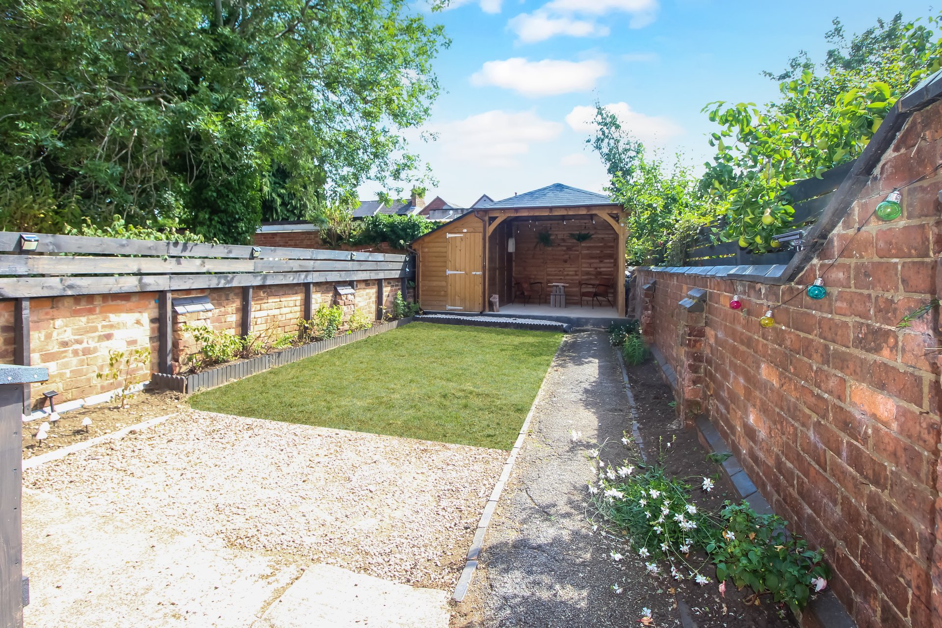 Externally the property boasts an enclosed rear garden mainly laid to lawn and patio area. To the rear of the garden is a bespoke storage shed and gazebo, an ideal entertaining space. There is secure gated access to the side of the property.