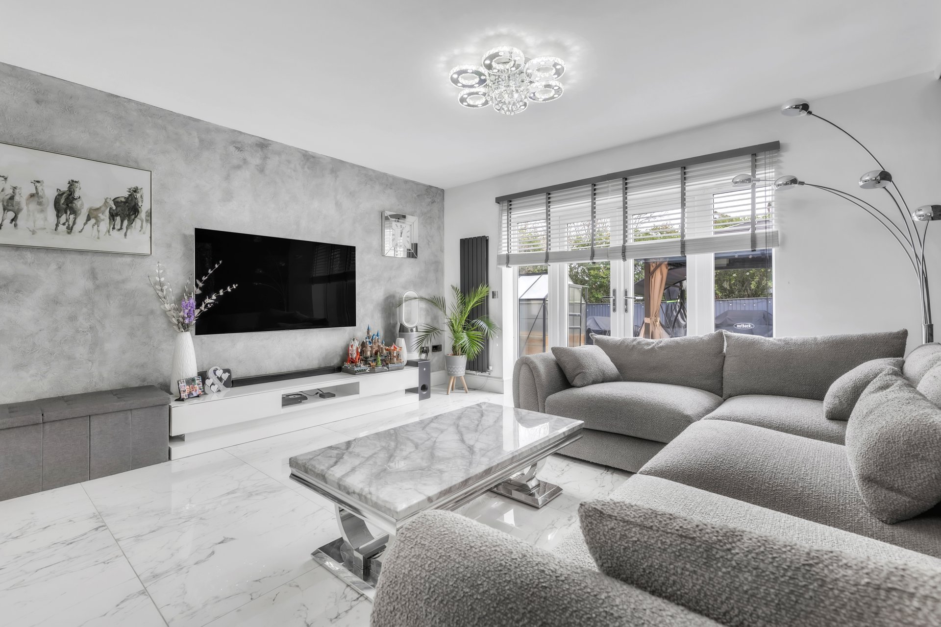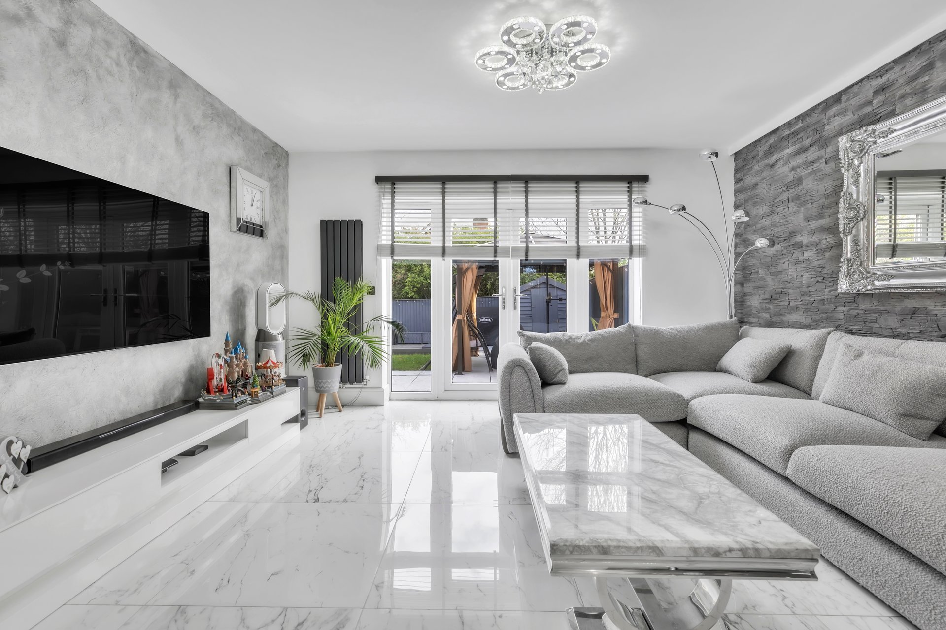 The heart of the home is the spacious reception room seamlessly connected to the kitchen area, which includes a practical breakfast bar – perfect for casual dining or morning coffee. The kitchen has a range of walnut effect units and cupboards, a built in double oven , gas hob and extractor fan, with a continuous granite worktop and splashback. The smart layout ensures plenty of natural light and an airy feel throughout the space, making it a versatile area for family life or hosting guests. With excellent attention to detail, this property truly reflects modern living standards.